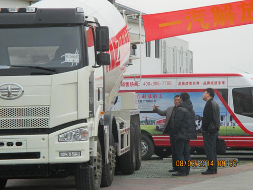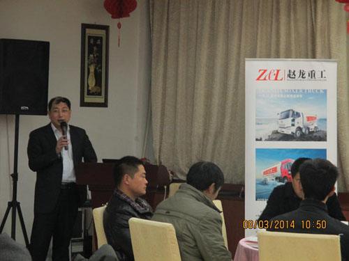 2014年3月8日,在美麗富饒的園林城市蘇州,浙江趙龍重工有限公司聯合一汽解放召開了首次“一汽解放·趙龍重工國四混凝土攪拌車推介會”。此次會議邀請到了太倉地區各個攪拌站負責人以及周邊地區的行業用戶共計40余人。