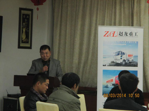 會議一開始,由一汽解放南京商代處的王總發表講話。王總對各位嘉賓的到來表示歡迎,并對一汽解放J6系列產品目前的生產現狀做了概述。王總強調,隨著一汽解放與趙龍重工不斷深入的合作,肯定能生產出更加優質的產品。